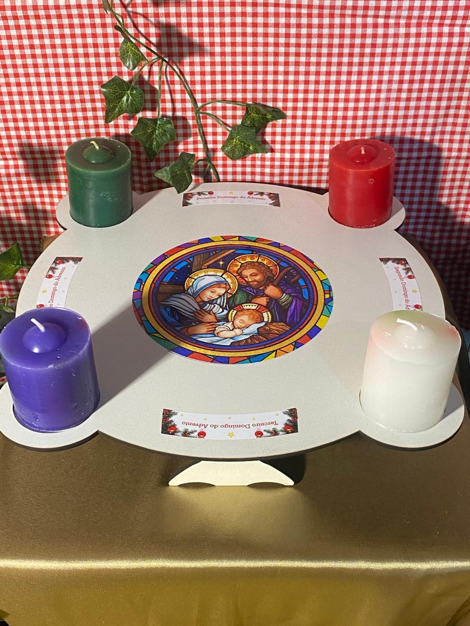 Linda coroa do Advento em madeira MDF, perfeita para celebrar o tempo do Advento em sua casa. Acompanha velas inclusas, proporcionando um toque especial à decoração natalina.