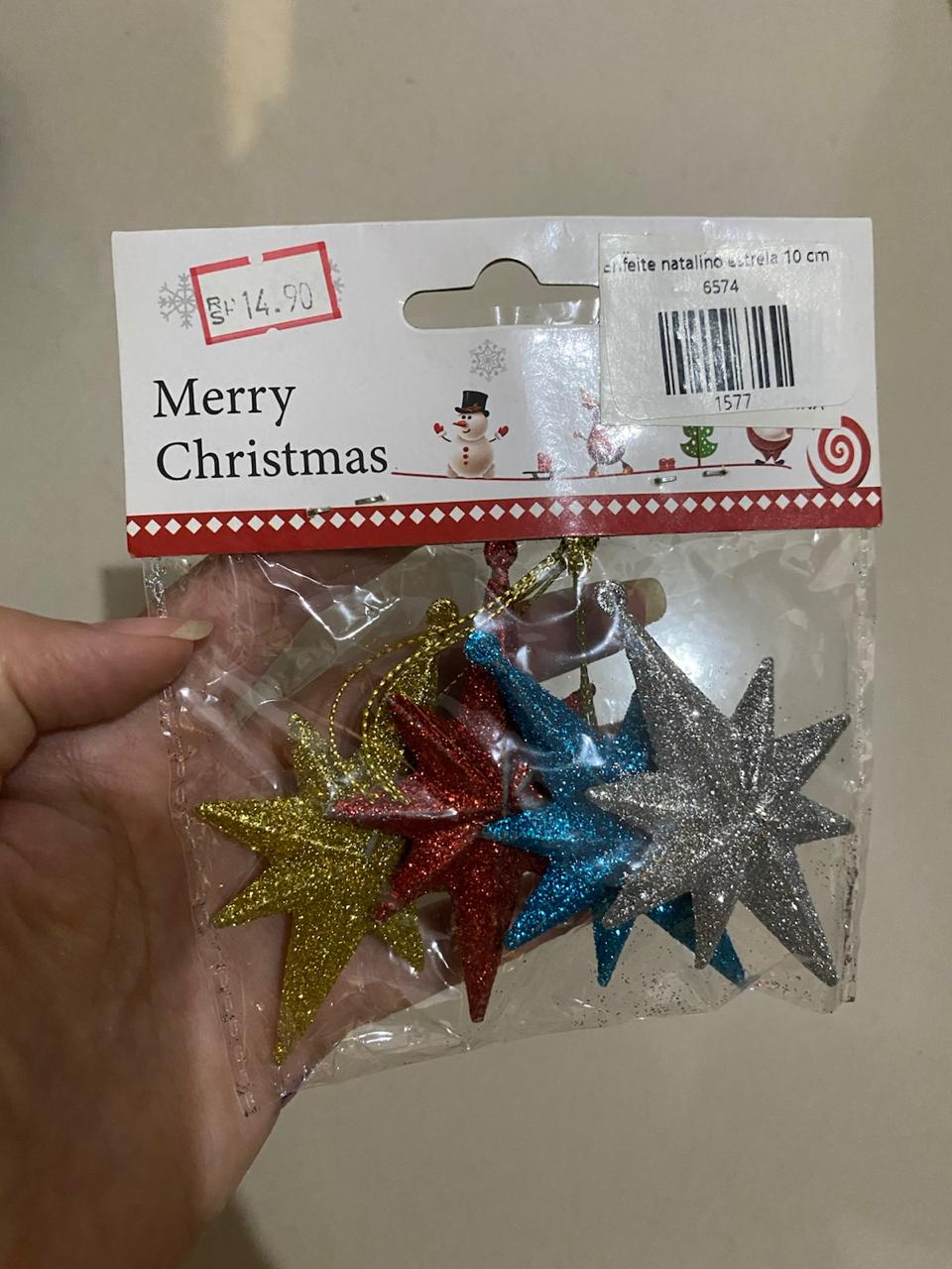 Decore sua árvore de Natal com muito brilho e cor! Este kit contém 4 estrelas revestidas com glitter colorido, proporcionando um toque festivo e alegre à decoração natalina.