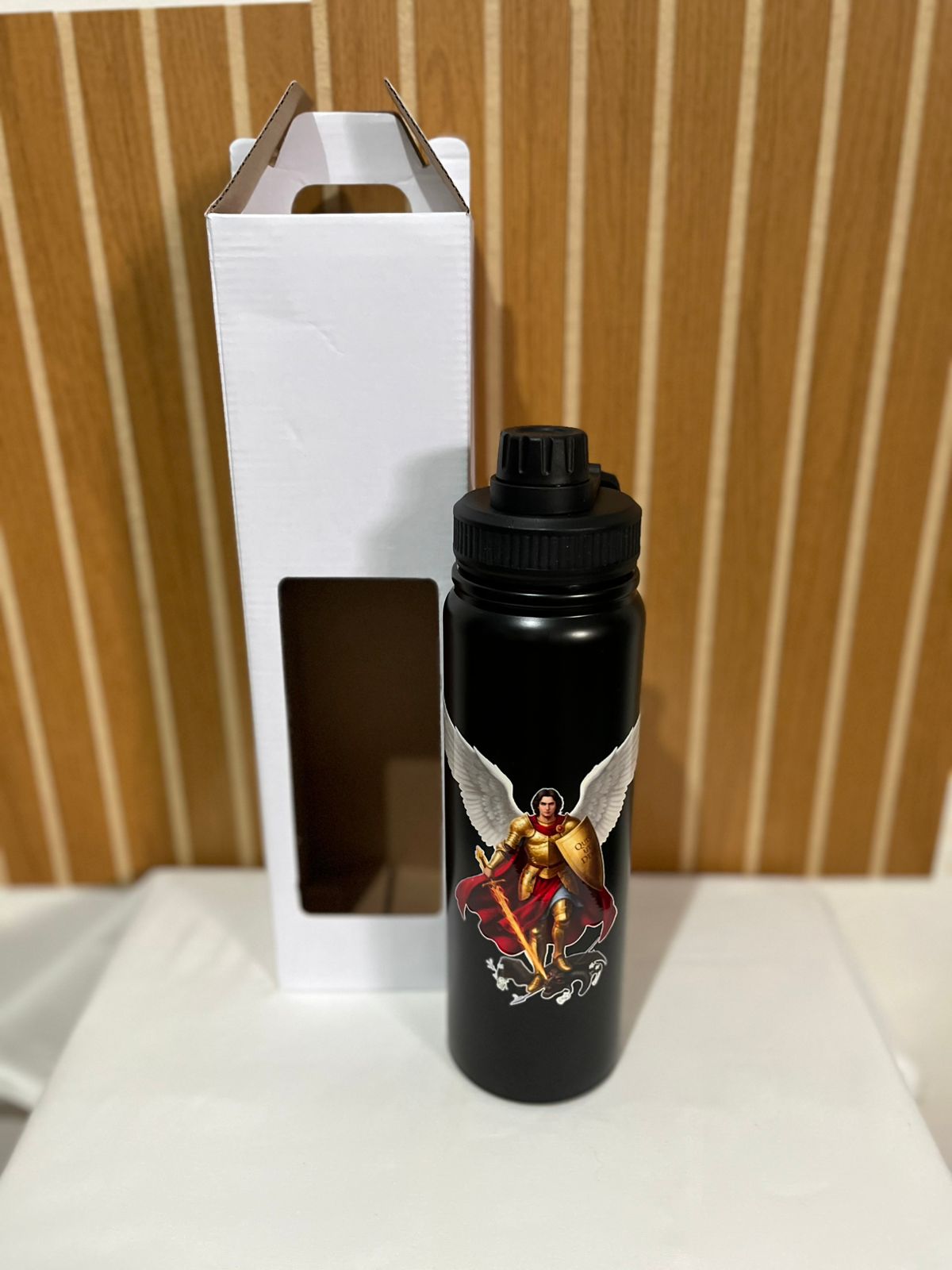 Nossa garrafa térmica religiosa une funcionalidade, beleza e devoção em um único produto. Com design moderno e acabamento delicado, ela é ideal para quem deseja levar sua fé para o trabalho, estudos, academia ou momentos de oração.