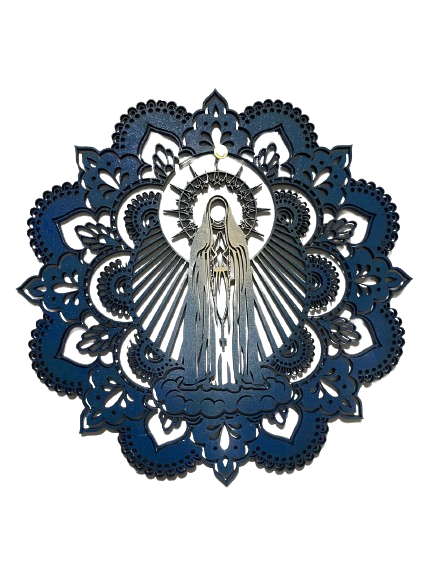 Linda mandala decorativa em MDF de 3 mm com corte a laser e pintura acrílica, ideal para valorizar ambientes como salas, cozinhas, lojas, consultórios, churrasqueiras e outros espaços internos.