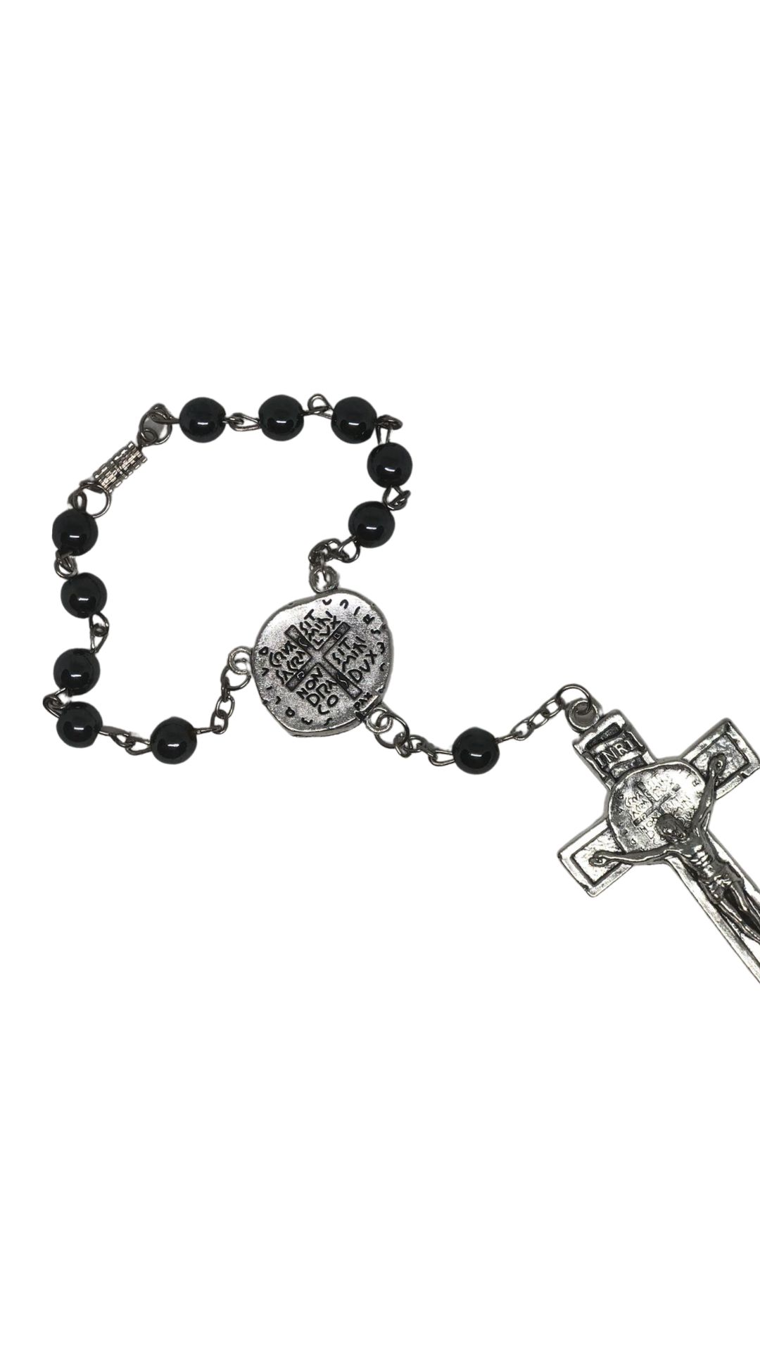 Dezena para Carro, confeccionada com pedras de hematita e metal, unindo proteção, espiritualidade e elegância. Possui abertura para facilitar a instalação em retrovisores ou outros locais do veículo.